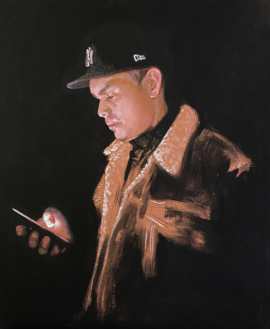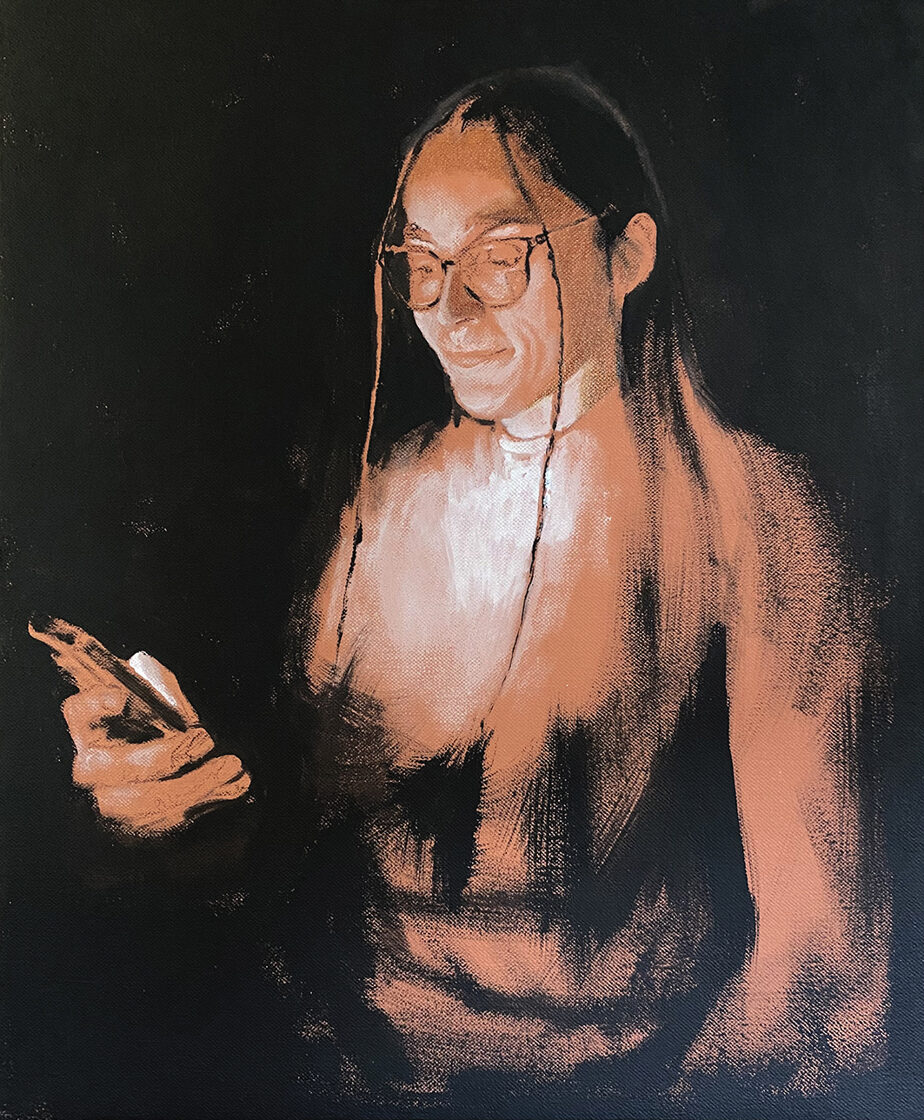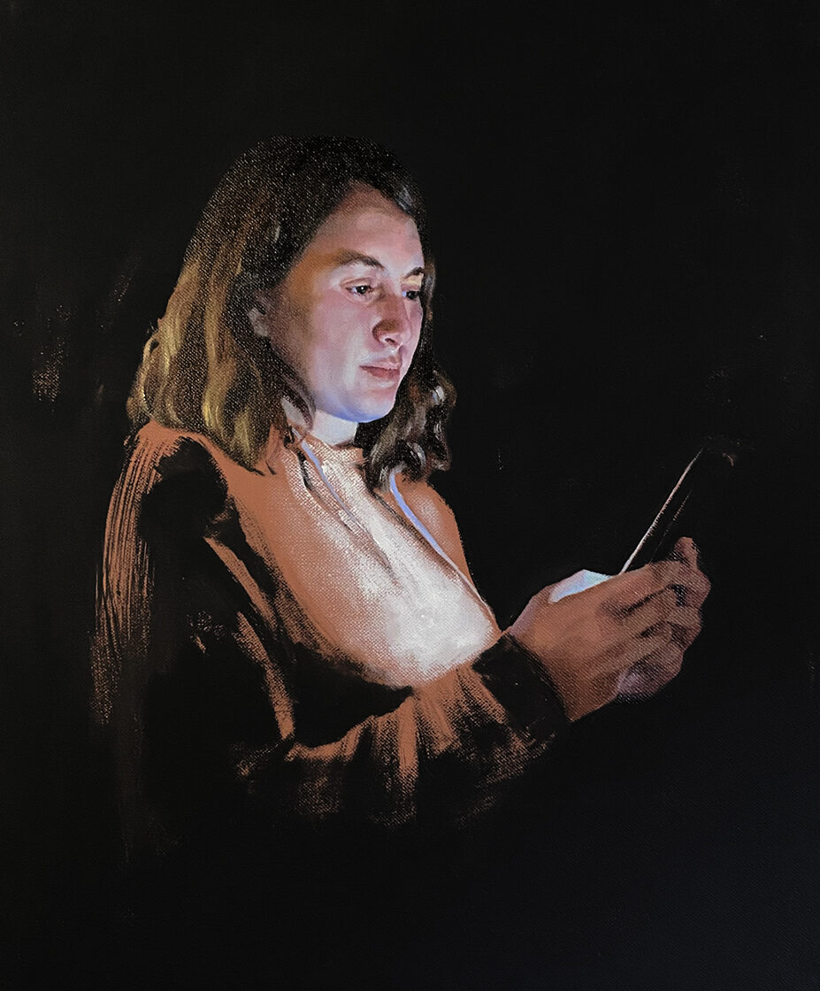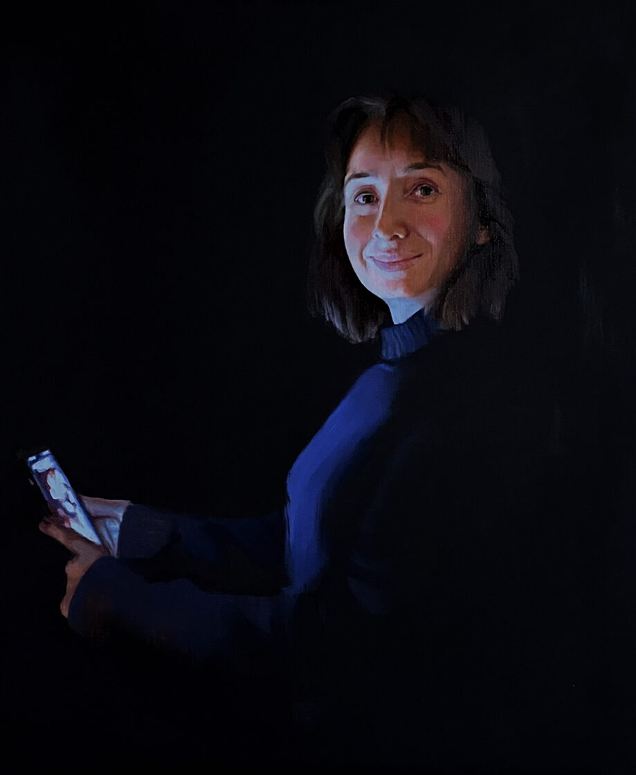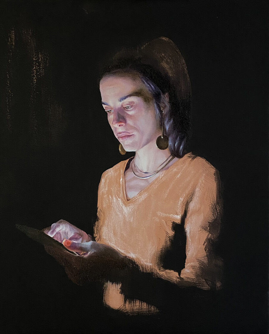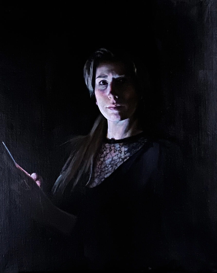 On Music. Rennée. Oil on linen. 116x60 cm. -