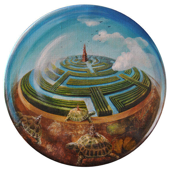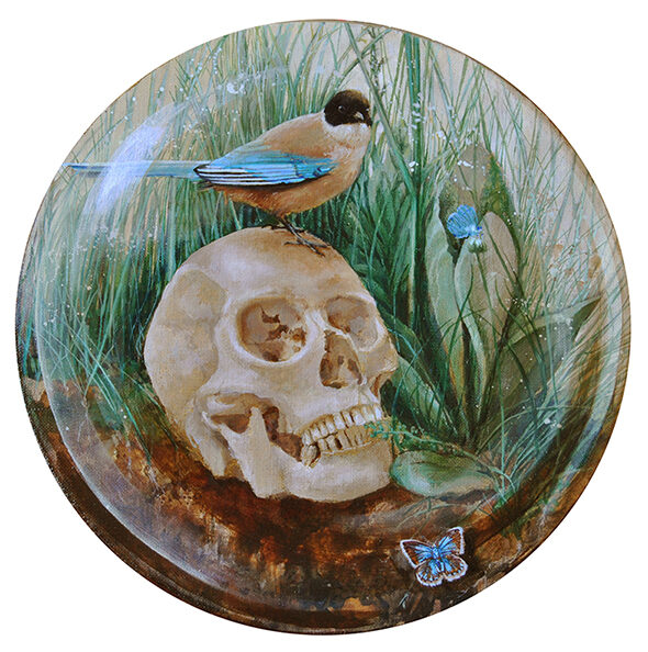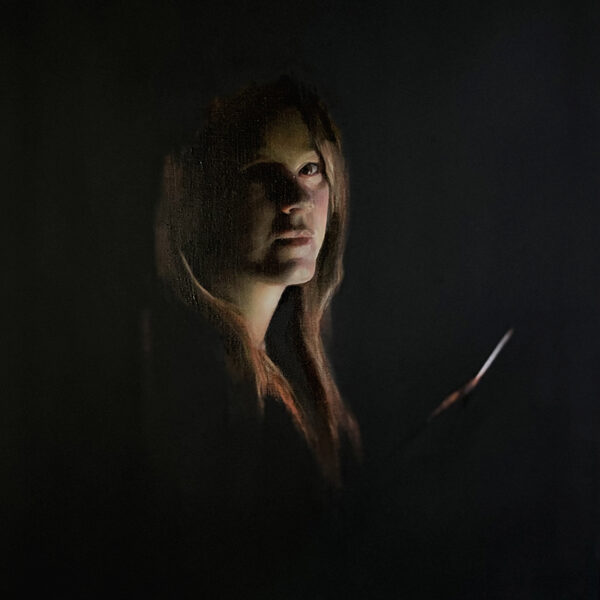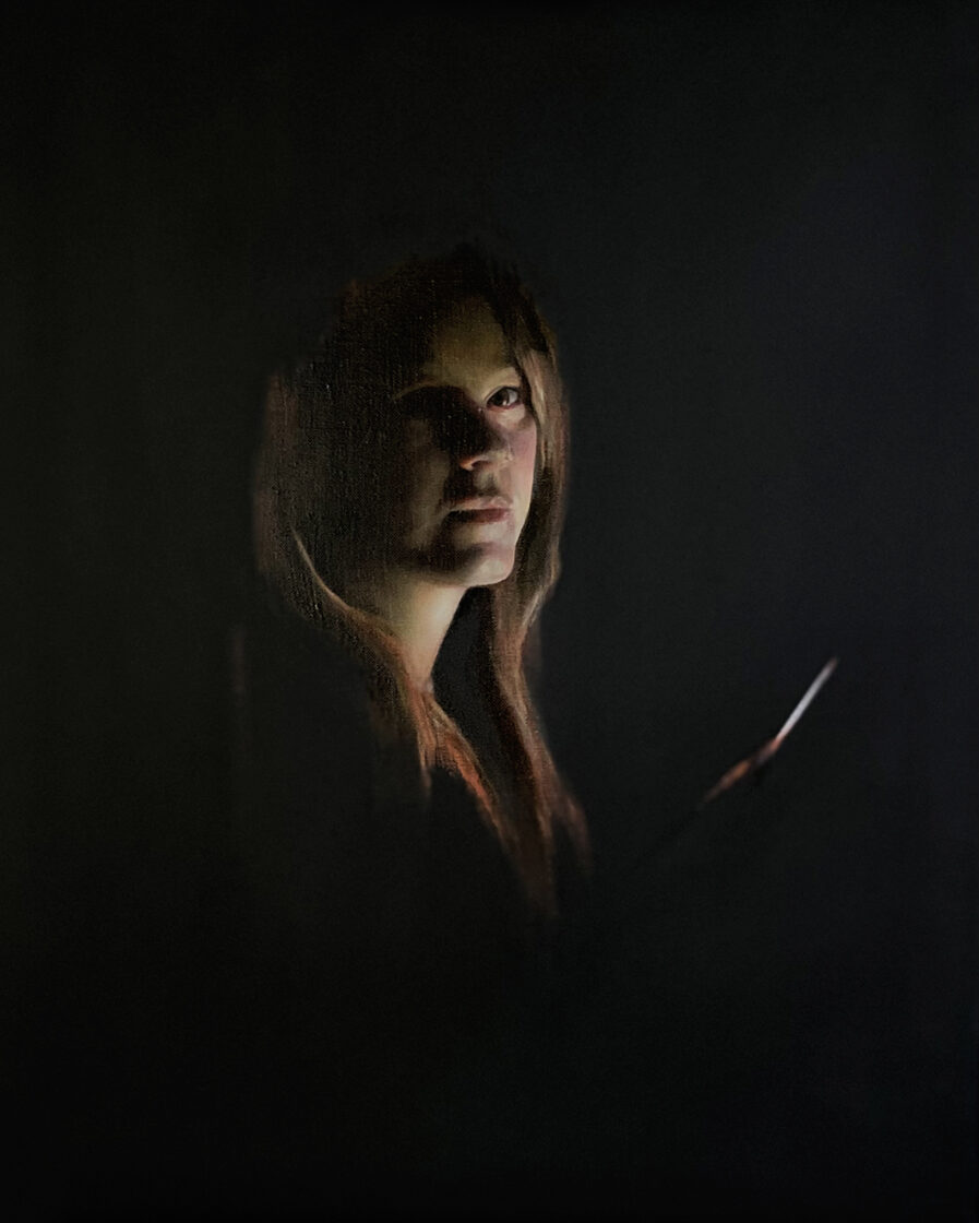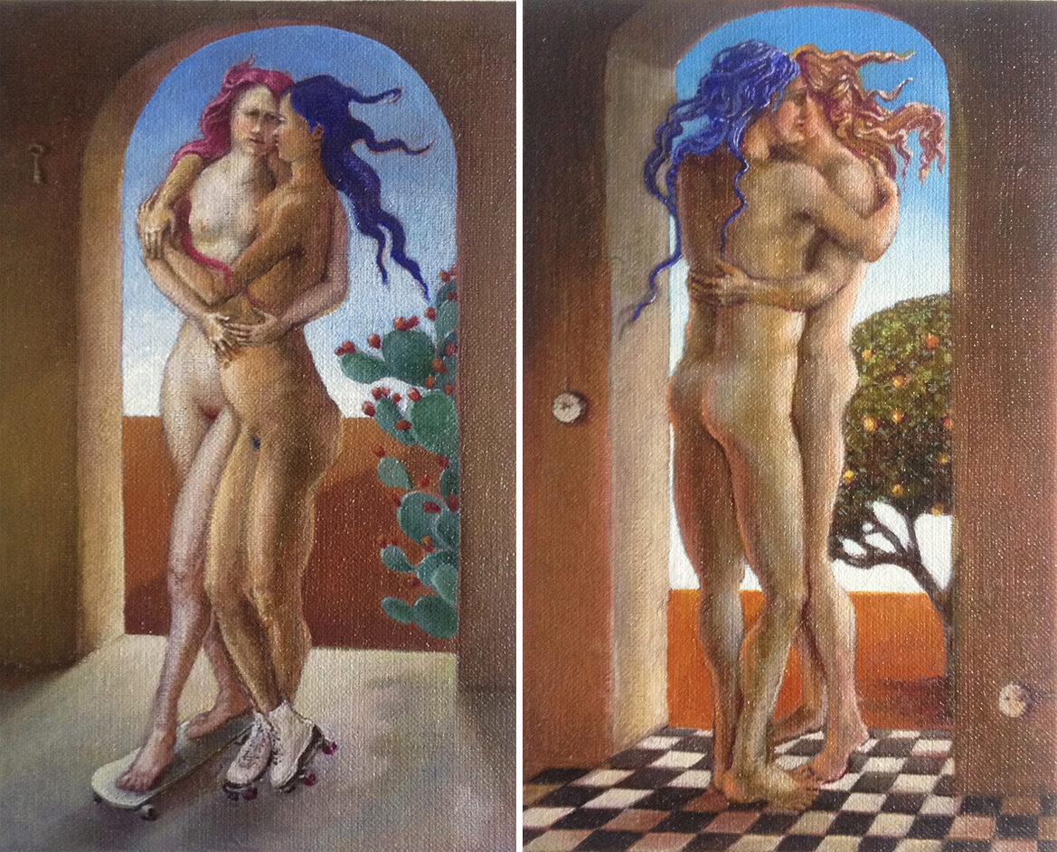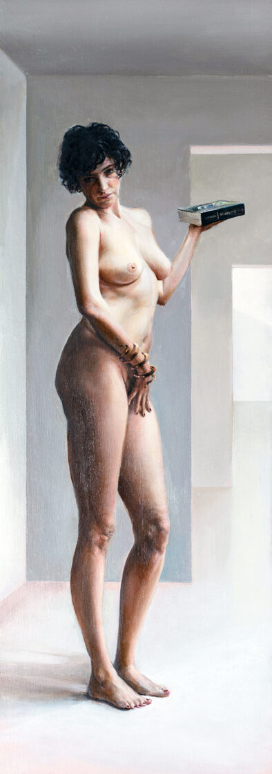 Lilith and (the weight of) the History of Art. Oil on panel. 53x18 cm -