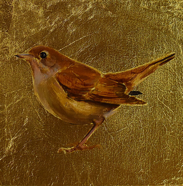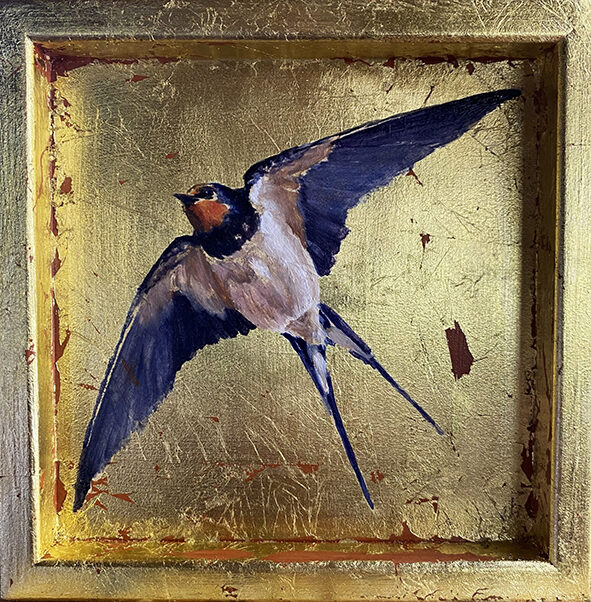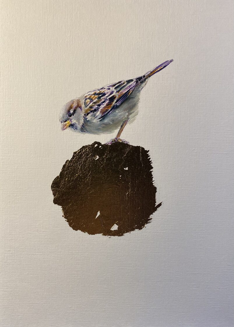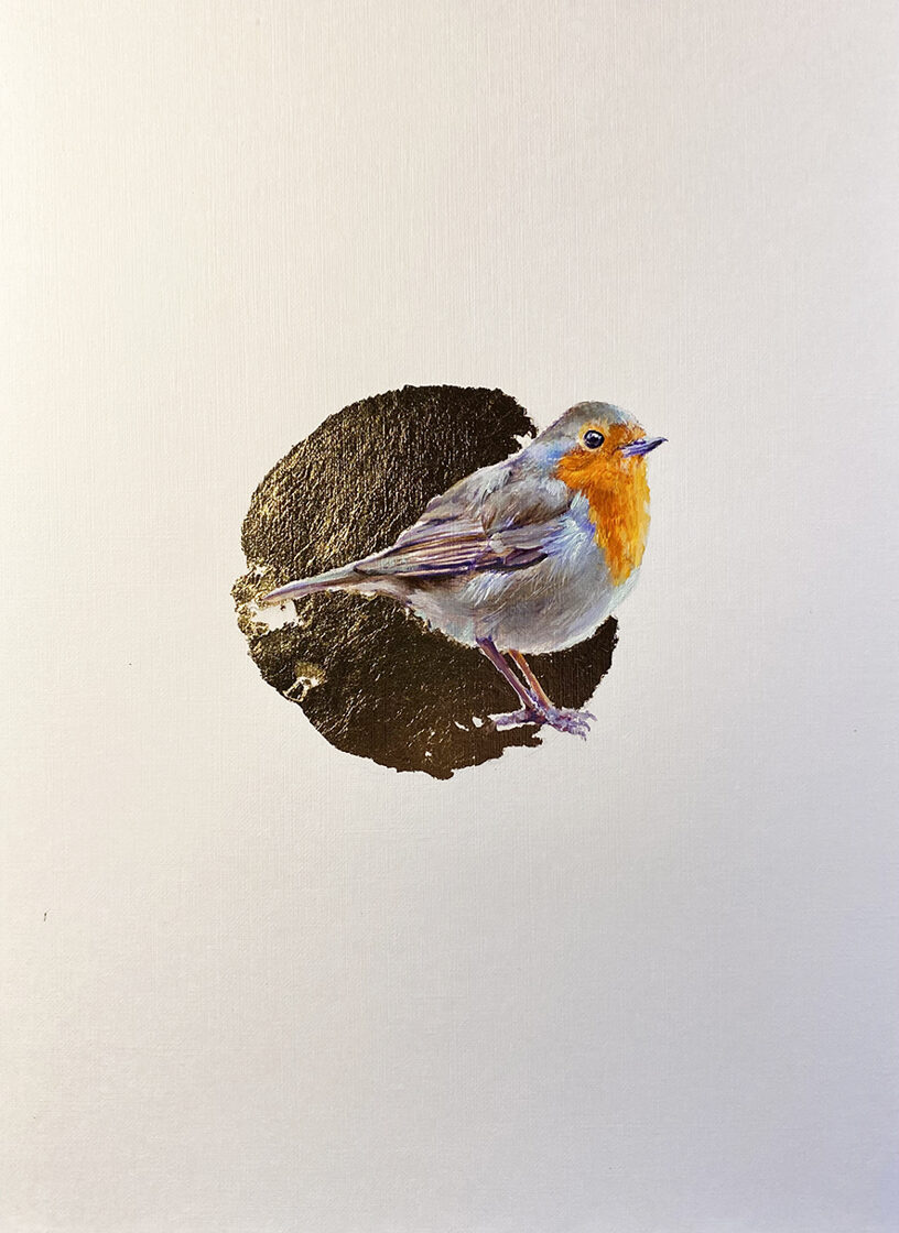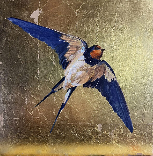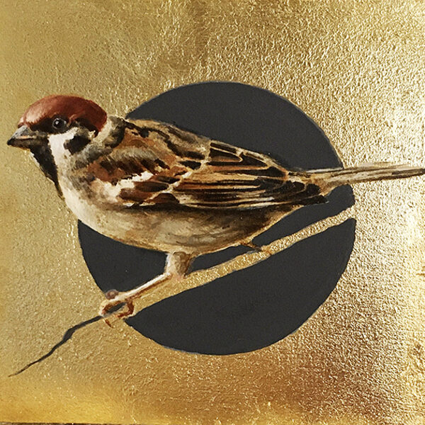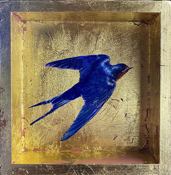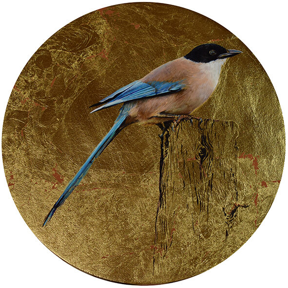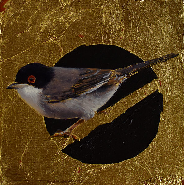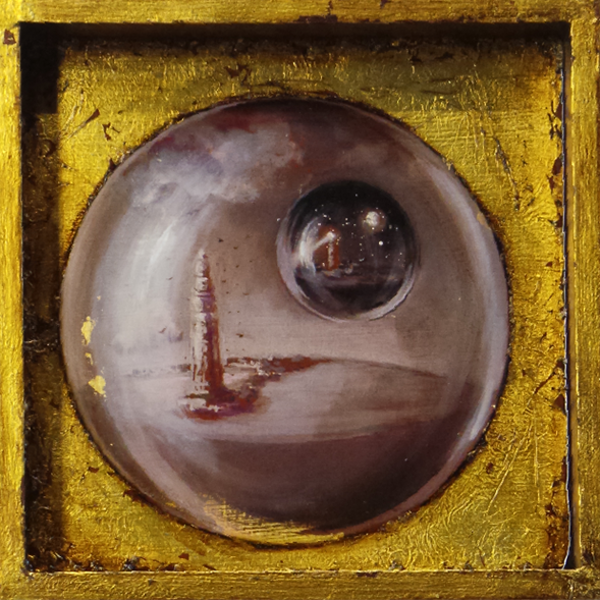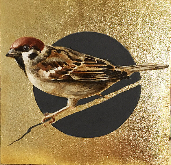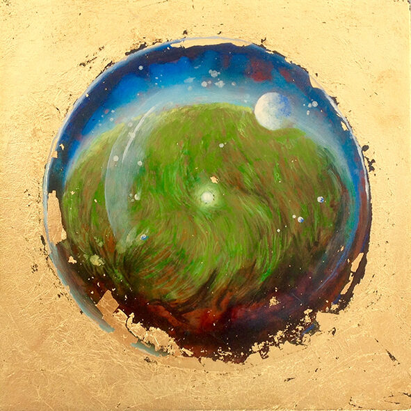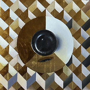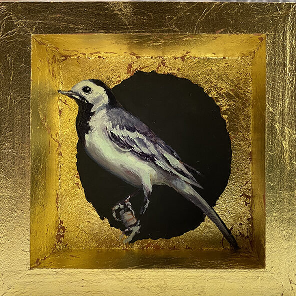 Winged I. Oil and gold leaf on linen. 100x91 cm.