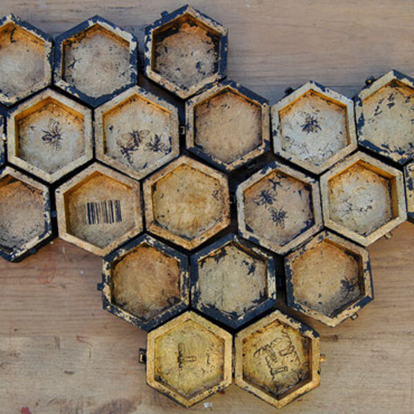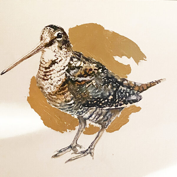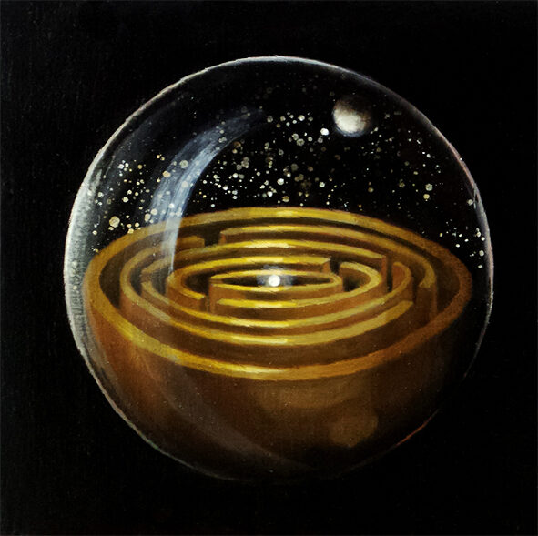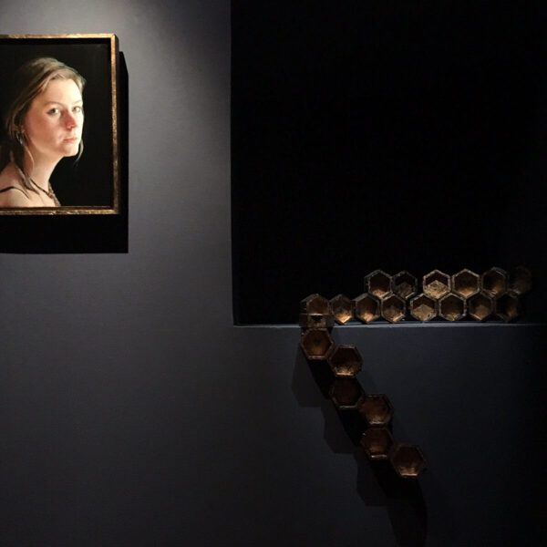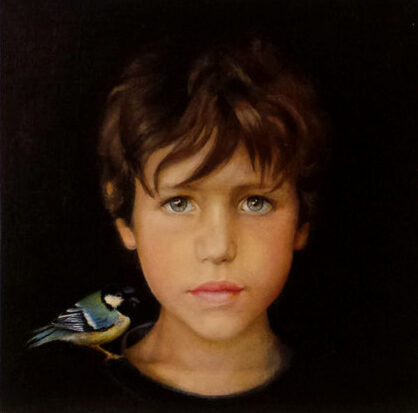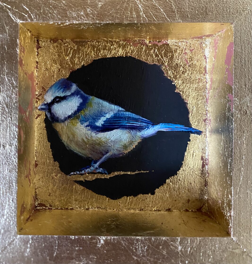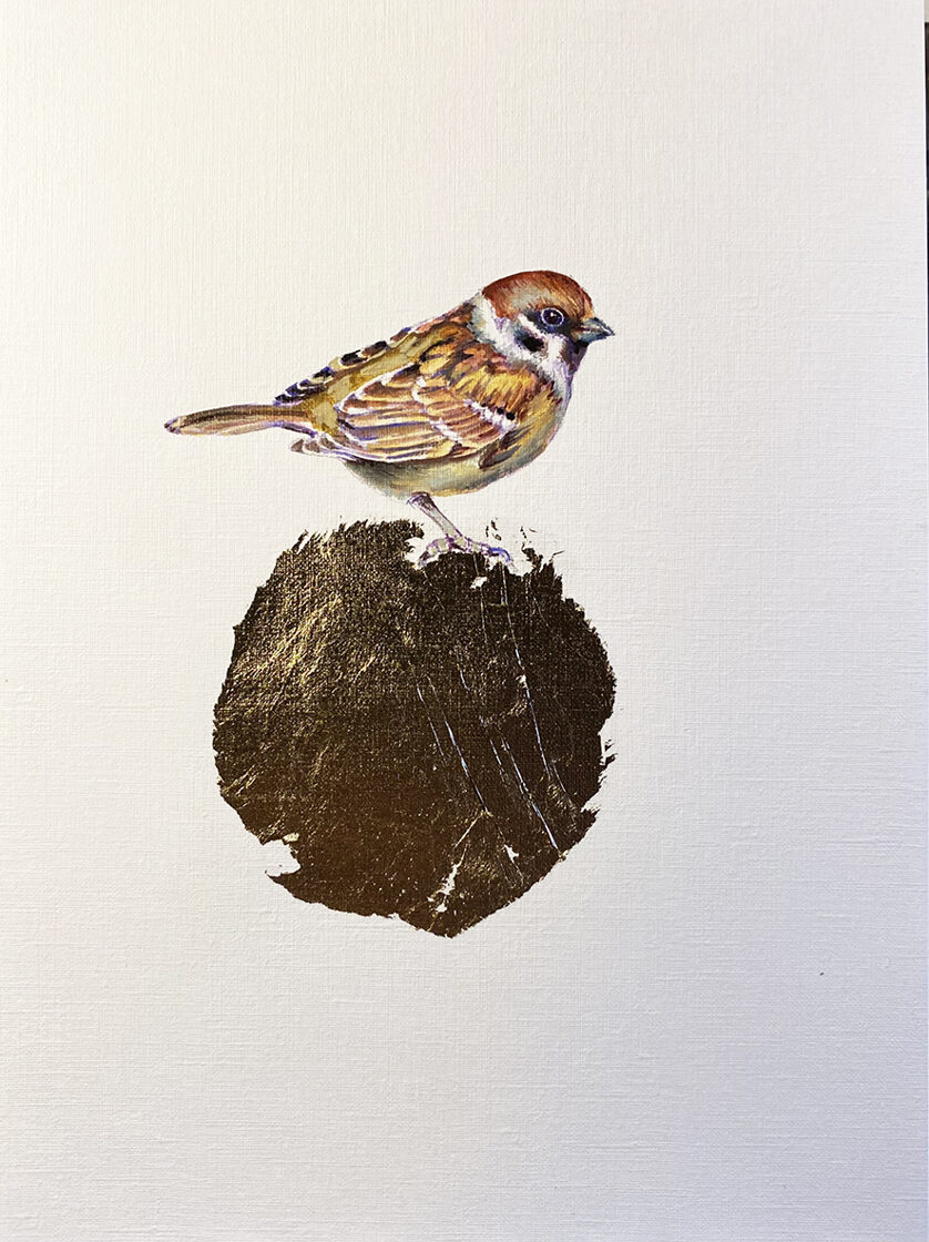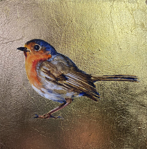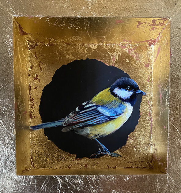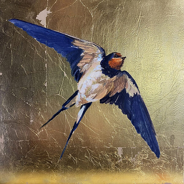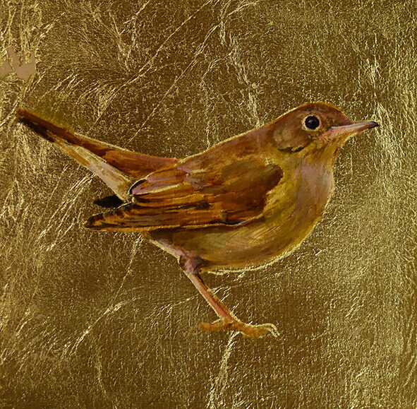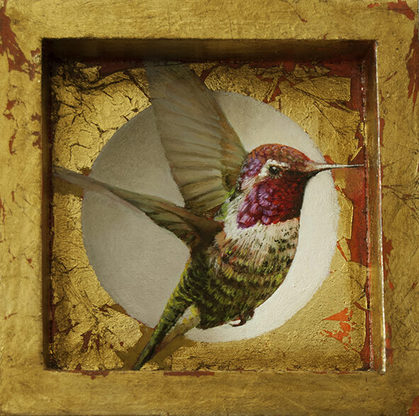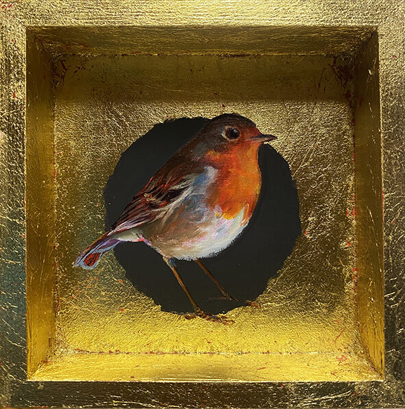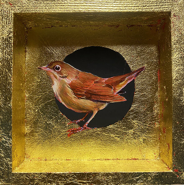 Winged I. Oil and gold leaf on linen. 100x91 cm.