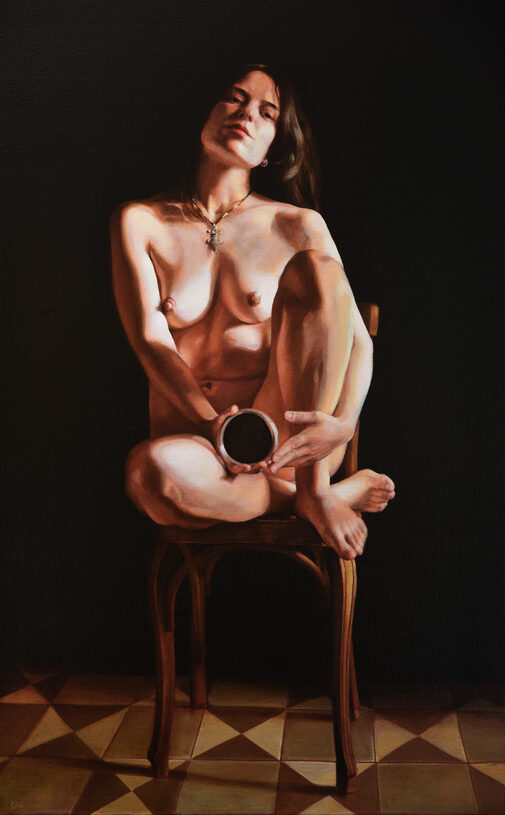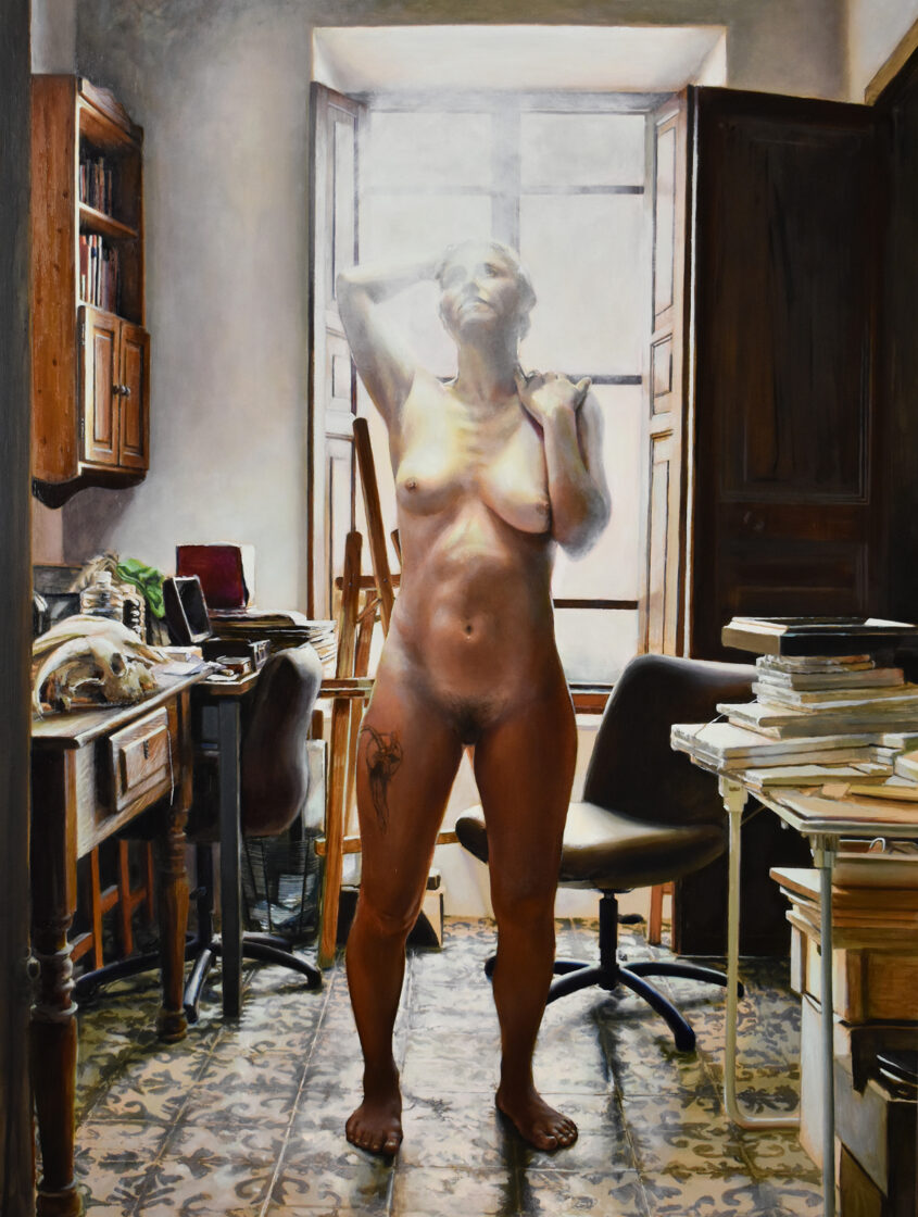Athena before love. Oil and gold leaf on linen. 170x116 cm. -