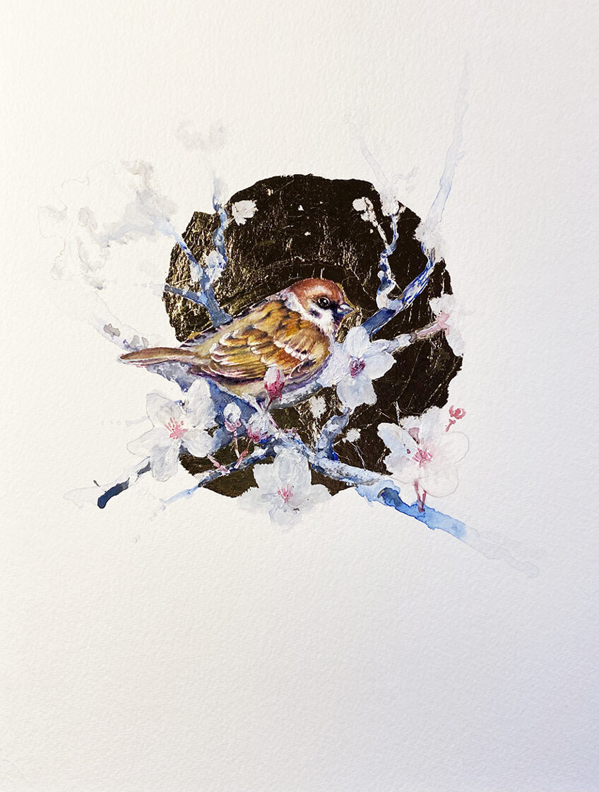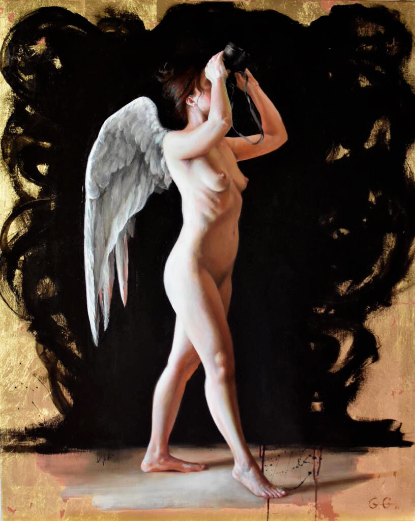 Winged III. Oil and gold leaf on canvas. 170x100 cm. -